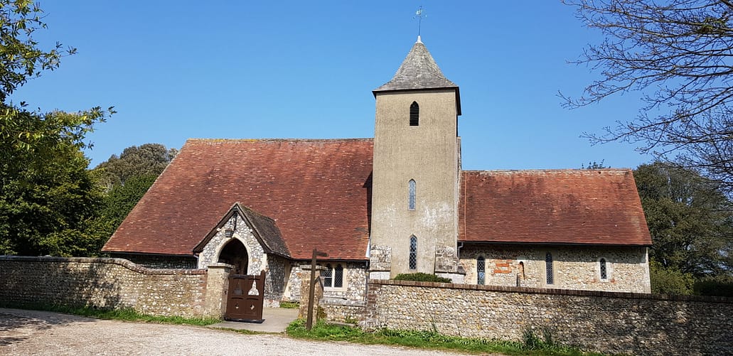 Located adjacent to the former Roman road to London (called Stane Street), a stone church has existed on this site since about 710AD, not long after the arrival of St Wilfrid’s mission to the lands of the South Saxons. Much of the fabric of the Chancel dates from this period being constructed from materials recycled from the ruins of the Roman city of Regnum. The south wall of the Chancel features a filled in Saxon window and typical Saxon “herring-bone” stonework. Early in the 13th Century the church was enlarged to its present size by the addition of a Nave and Tower. The central Saxon arch of the Nave survived until it was rebuilt in 1867. The Nave encorporates features of Norman and early English style, and the font is an example of rare Elizabethan date. The external appearance of the church was altered in the Victorian period with the addition of a Porch and Vestry, the present Bell Tower and the installation of an organ in the north wall of the Chancel. The Bell Tower has three bells, the eldest dated 1581. The stained glass East Window is by Clayton & Bell and is considered one of their best.